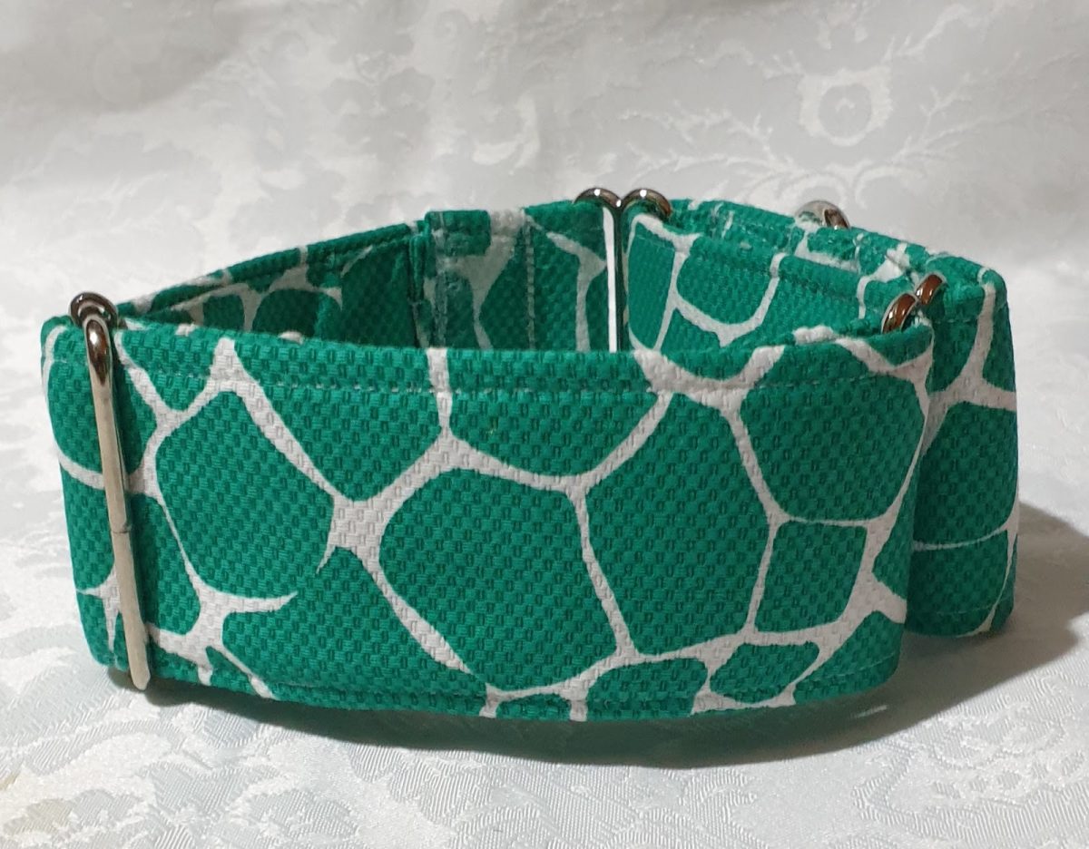 Collar Martingale antiescape para Perros de razas pequeña mediana y Grande, hechos a mano con materiales de primera calidad. Collar Modelo C124 en un precioso estampado verde y blanco. Compra este producto y colabora con nuestra protectora. Articulo Solidario, con su compra colaboras en el mantenimiento y cuidado de los perros de nuestro refugio en Malaga .